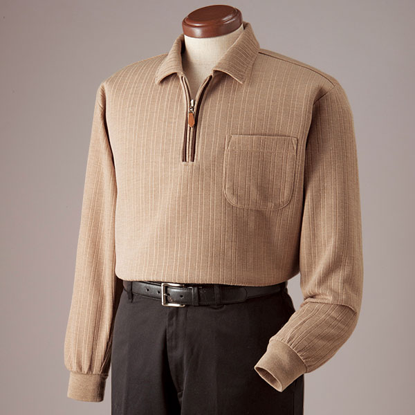 ジップタイプの衿もとは、スポーティで若々しい着こなしを演出します。