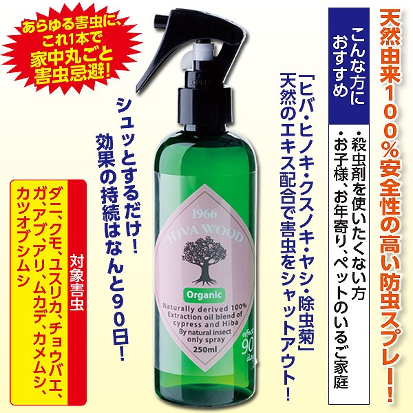 「ヒバ・ヒノキ・クスノキ・ヤシ・除虫菊」天然のエキス配合で害虫をシャットアウト!
