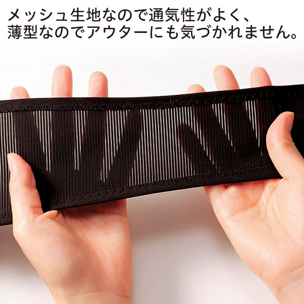 メッシュ生地なので通気性がよく、薄型なのでアウターにも気づかれません。