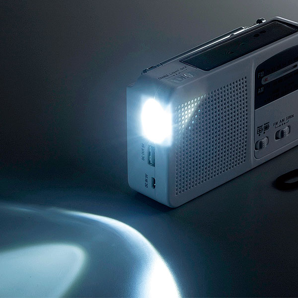 ■仕様/電源:単四乾電池×3本(別売)、手回し発電、ソーラー充電、USB充電