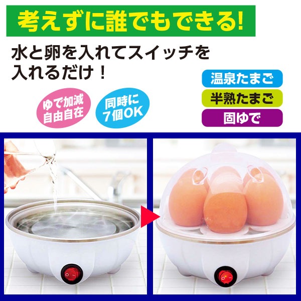 水と卵を入れてスイッチを入れるだけ!