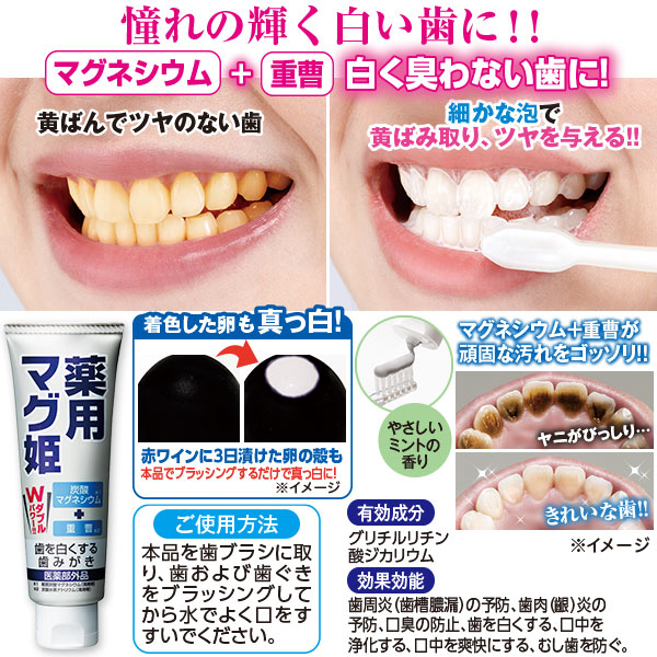 【 マグネシウム 】+【 重曹 】で白く臭わない歯に!