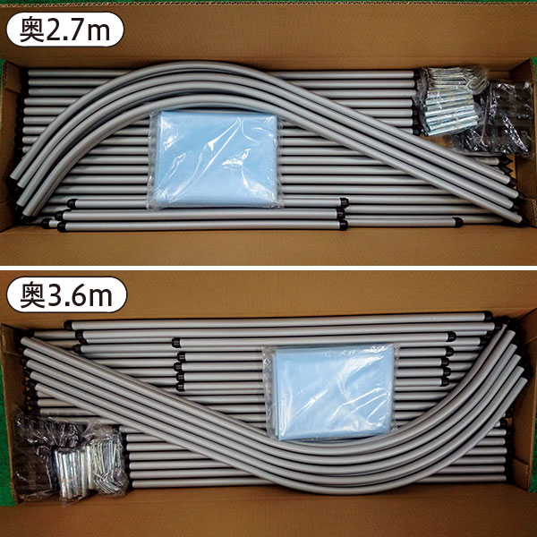 ・3.6m:開口190cm×長さ(奥行)360cm×高さ180cm(土中30cm埋め込み時)、重量:10.2kg