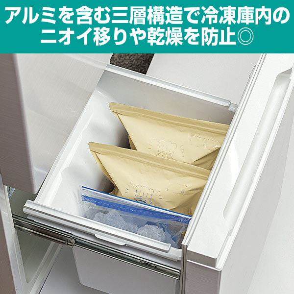 アルミを含む三層構造で冷凍庫内のニオイ移りや乾燥を防止◎