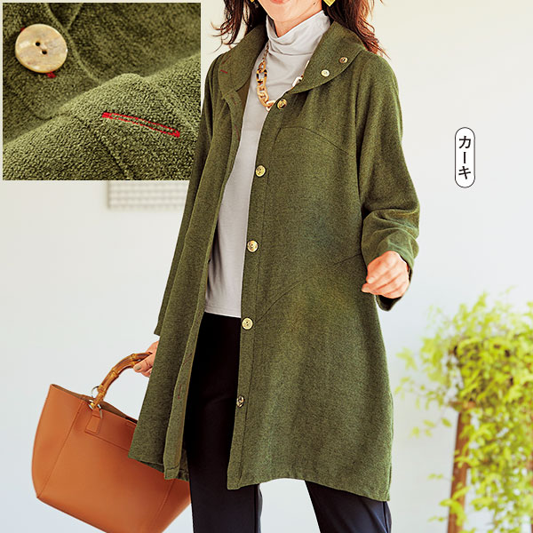 杢調の深みのあるカーキグリーンが、秋のお出かけを彩ります。