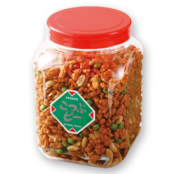 芳ばしいあられの焼き加減とグリーンピース。もちろん主役はピーナッツ。