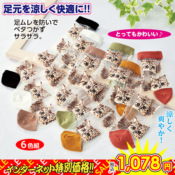 □■ねこ柄シアーソックス 6色組