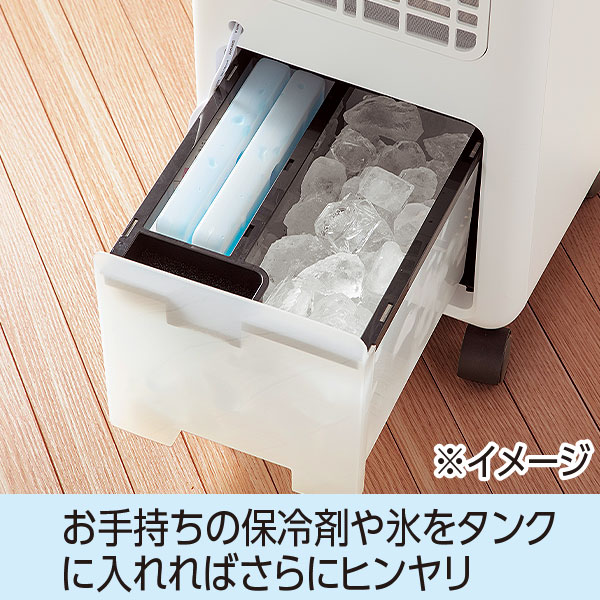 お手持ちの保冷剤や氷をタンクに入れればさらにヒンヤリ◎