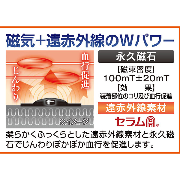 柔らかくふっくらしとした遠赤外線素材と永久磁石でじんわりぽかぽか血行を促進します。