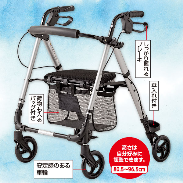 疲れたら座って休憩できるから、お散歩や買い物時も安心。