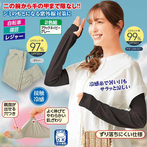 手の甲まで焼かないUVアームカバー 2色組