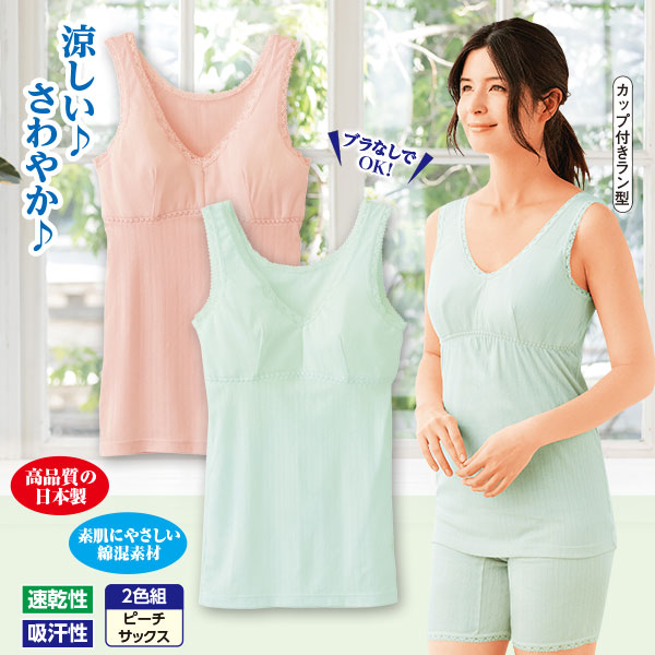 肌あたりのいいソフトカップ付きで、ブラなしでOK!