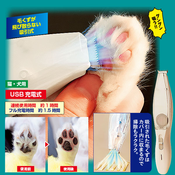 毛くずが飛び散らない吸引式です。