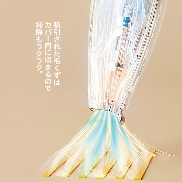吸引された毛くずはカバー内に収まるので掃除もラクラク。