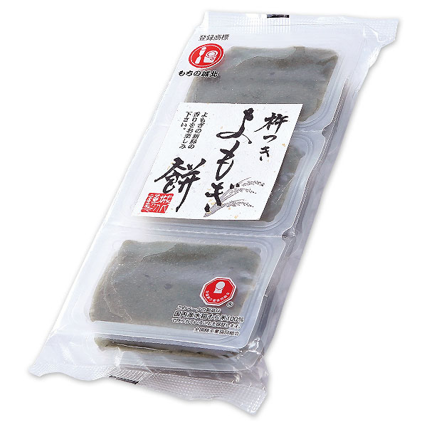 粘りの強い国内産水稲もち米100%と山形県蔵王山系の水で風味豊かな国産よもぎを練り込み、