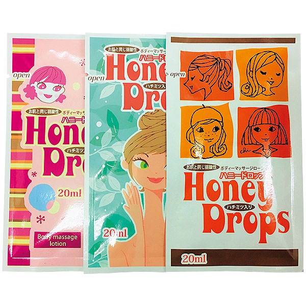 ○弱酸性、ハチミツ入りのローション3包付(パッケージ柄はおまかせになります。)