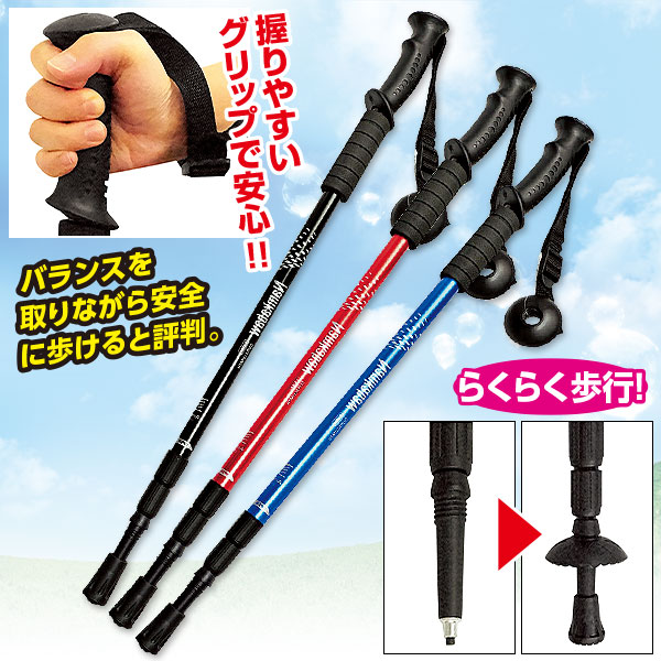 〈色おまかせ〉収納袋付 ウォーキングステッキ(同色2本組)