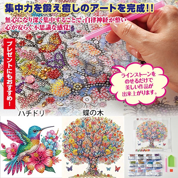 ラインストーンをのせるだけで美しい作品が出来上がります。