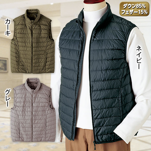 着合わせがしやすいカラーで、体温調節にも重宝するライトダウンベスト。