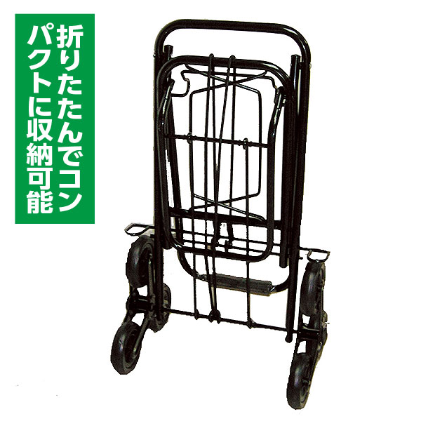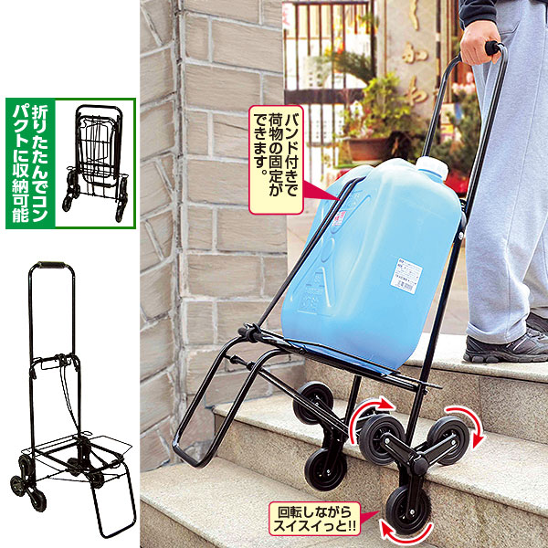 片側に3つの車輪が付いたキャリーカートだから少ない力で荷物運搬ができ、階段も登れます。