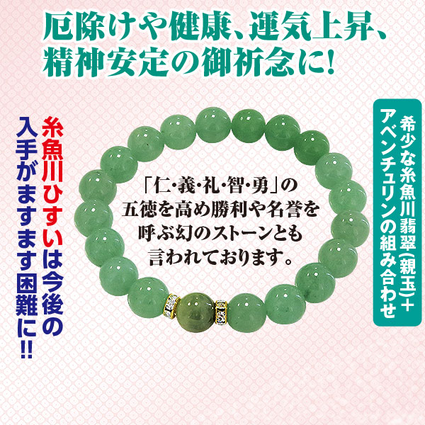 希少な糸魚川翡翠(親玉)+アベンチュリンの組み合わせ