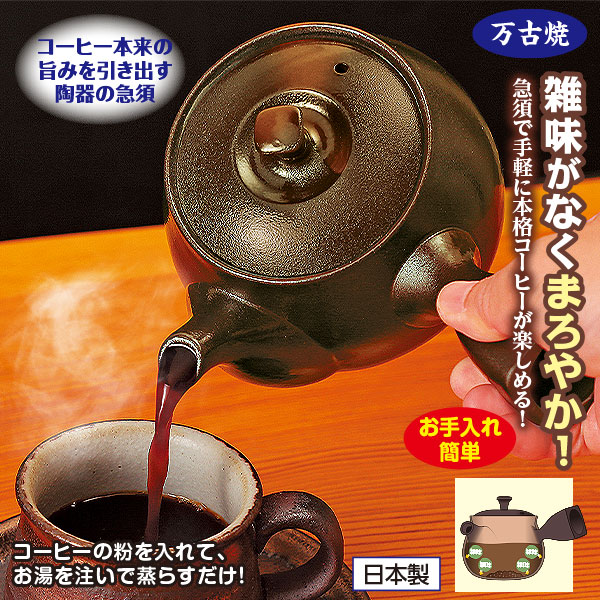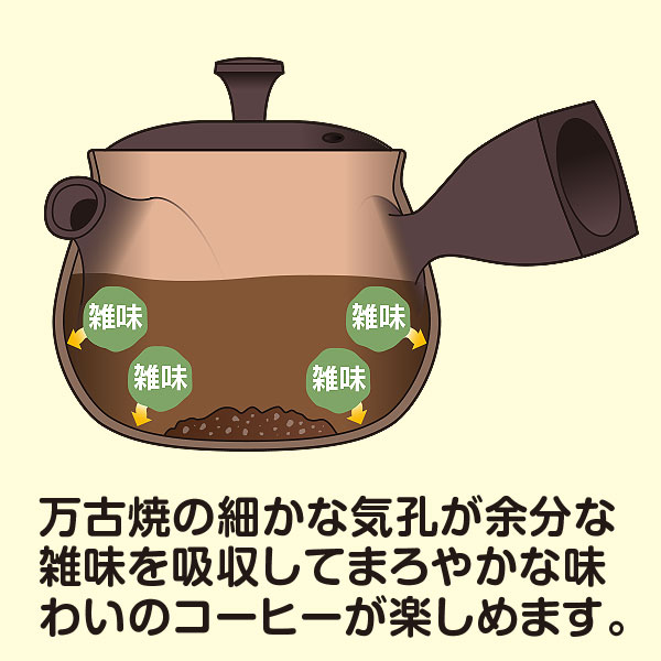 ●万古焼の細かな気孔が余分な雑味を吸収してまろやかな味わいのコーヒーが楽しめます。