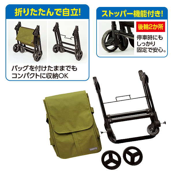 ■品質/フレーム:スチール、合成樹脂、バッグ表地:ポリエステル100%、バッグ裏地:アルミ蒸着フィルム タイヤ:EVA樹脂