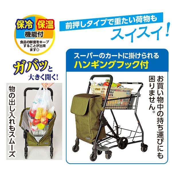 ●スーパーのカートに掛けられるハンギングフック付でお買い物中の持ち運びにも困りません。