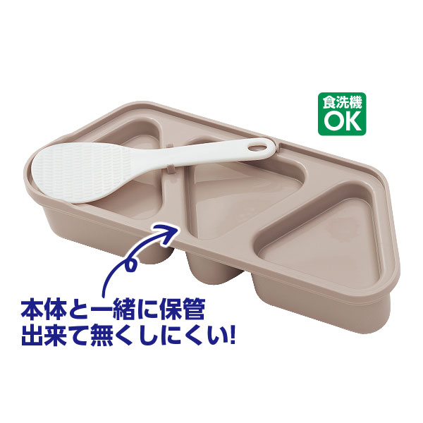 ◎ご飯を入れて押し込むだけで、均一でキレイななおにぎりができます。